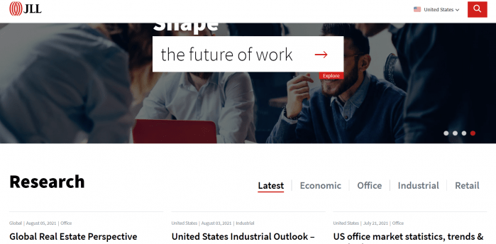 Jones Lange LaSalle offers five buckets of services for their global clientele. He first his helping companies find and lease space whether it is your first office, a place with room to grow, or a global location strategy. Next, they manage properties and portfolios. This includes going beyond just your standard cost and risk mitigation efforts. JLL also designs and delivers projects. This can mean breathing life into a new space or creating something from scratch that is right for your company.